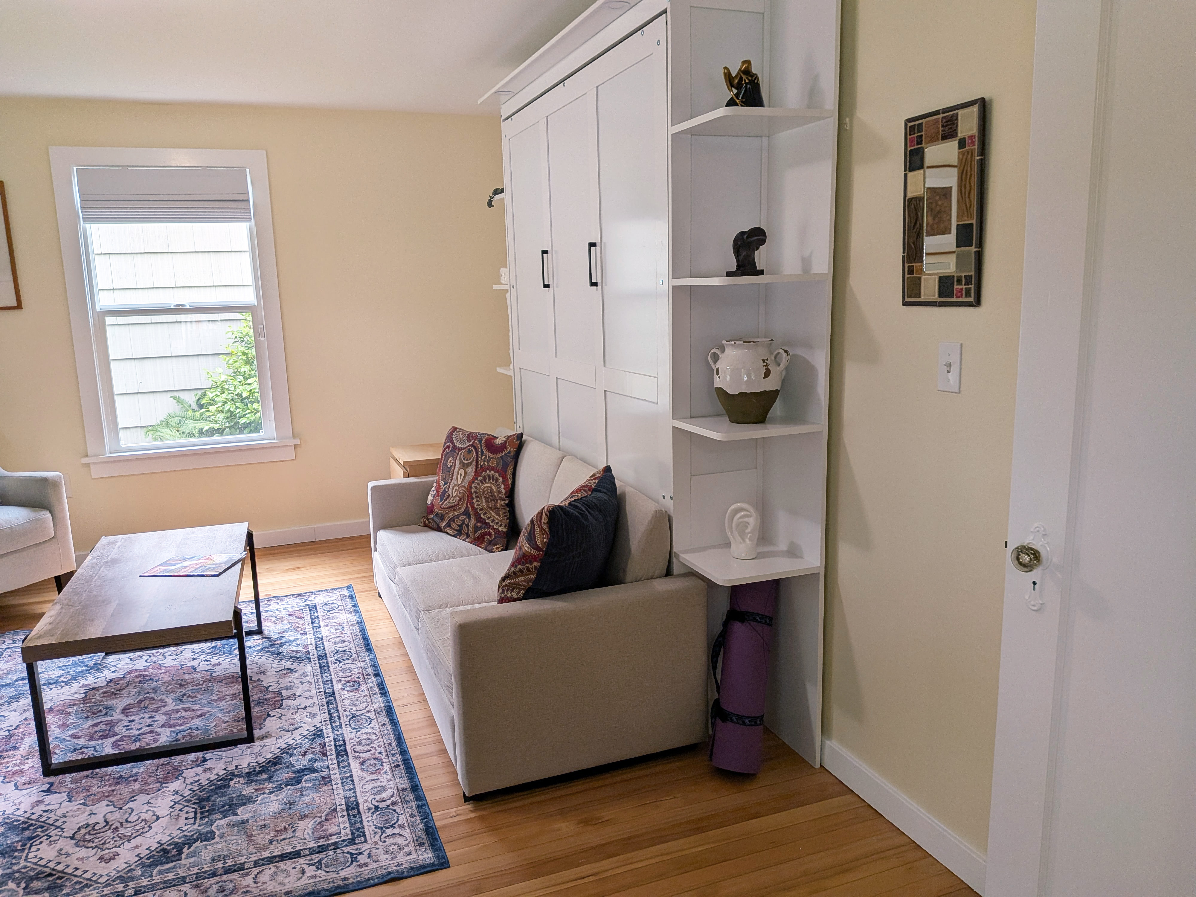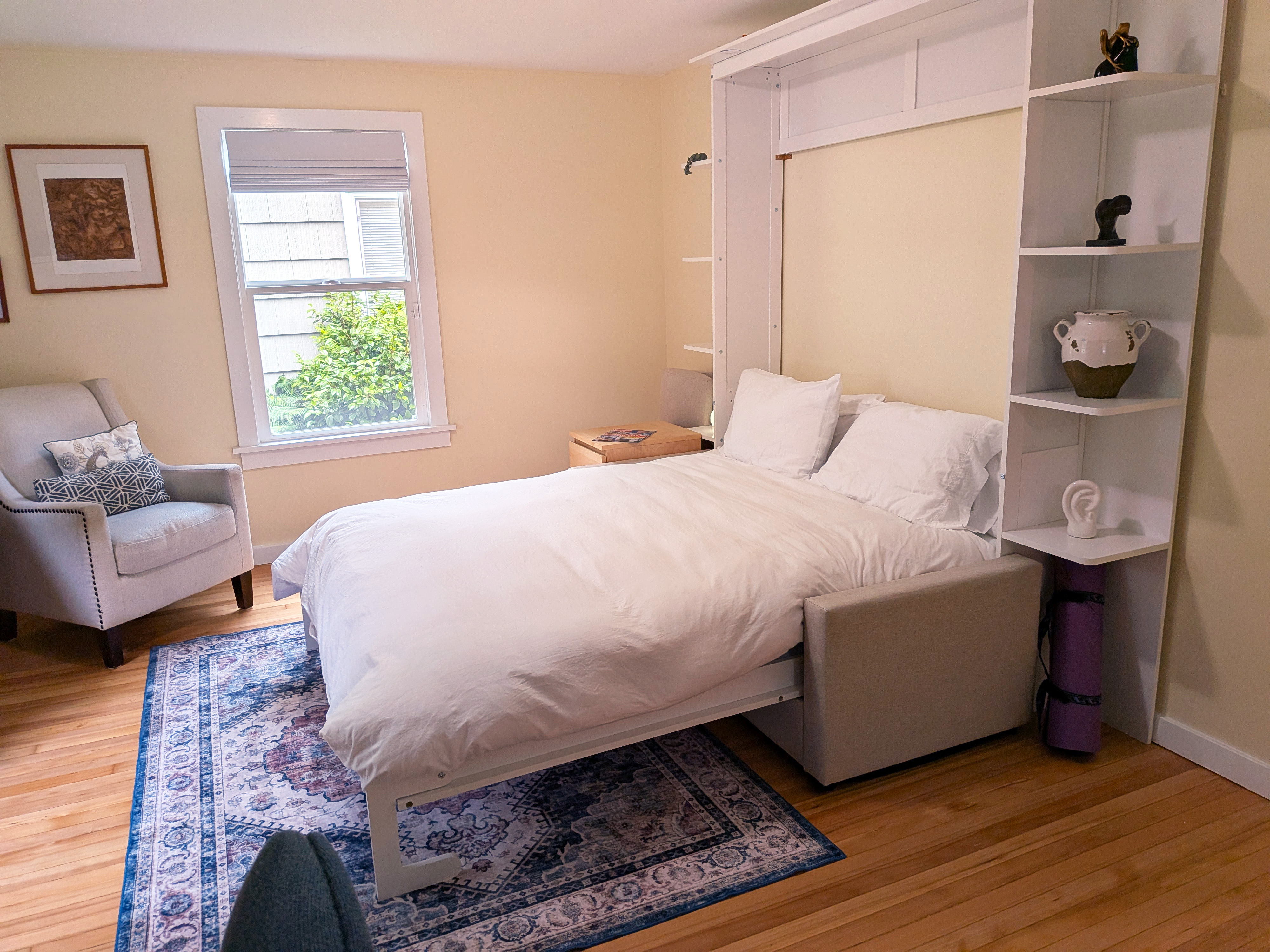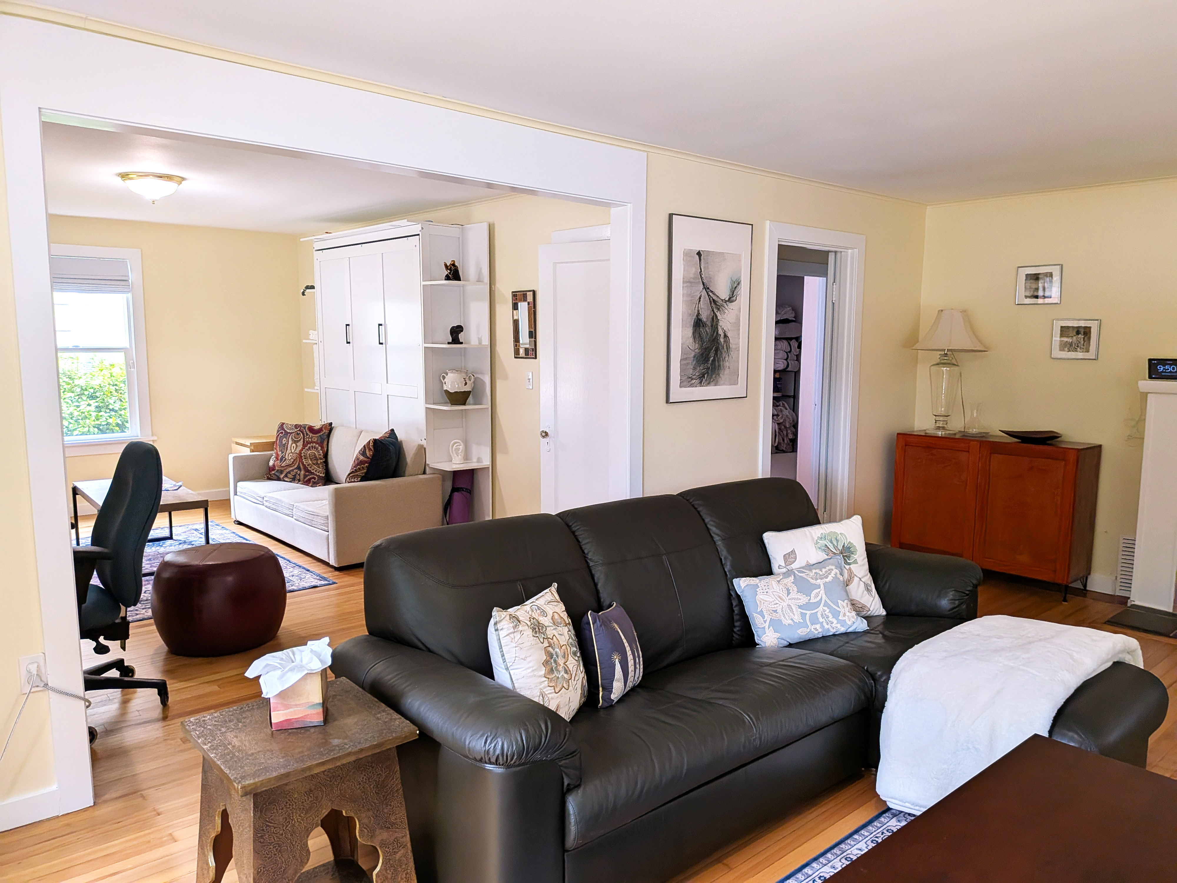 Relax in this charming two-bedroom 1940s home with original wood floors and a quiet backyard. The house can comfortably sleep up to six people with 3 queen beds, one in each bedroom, and a Murphy bed in the study/library. Located in downtown North Bend, you will be walking distance from restaurants, shopping, and entertainment as well as having easy access to outdoor activities such as hiking, mountain biking trails, climbing, and skiing. Come enjoy the peace.