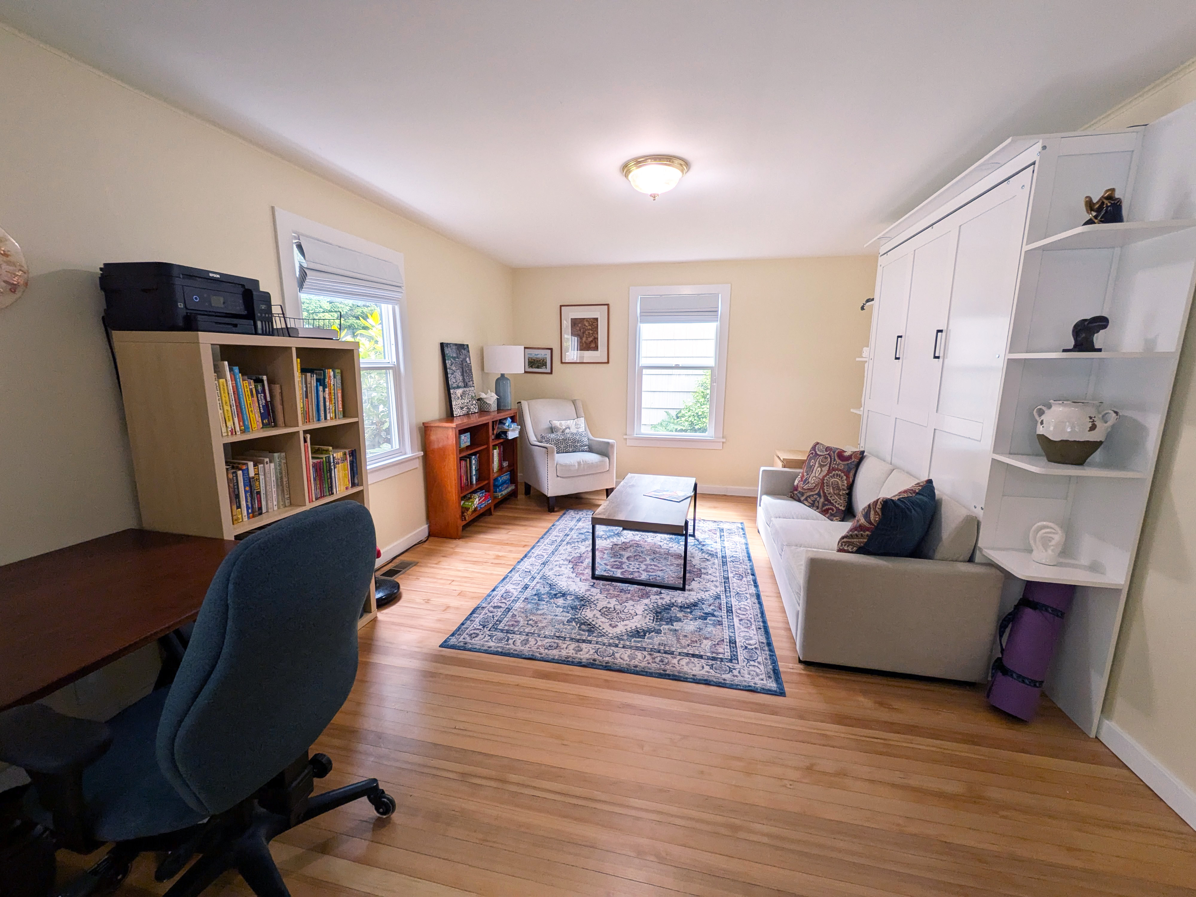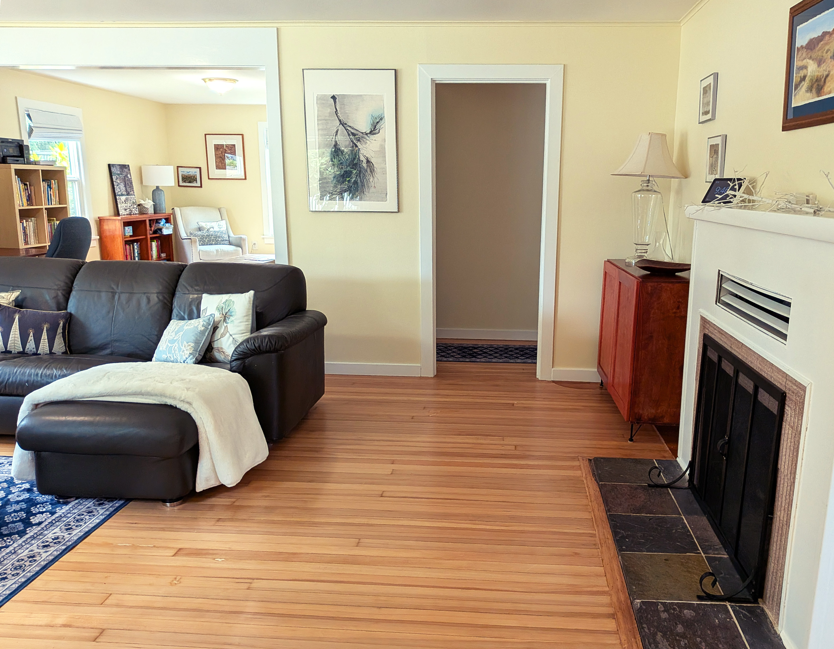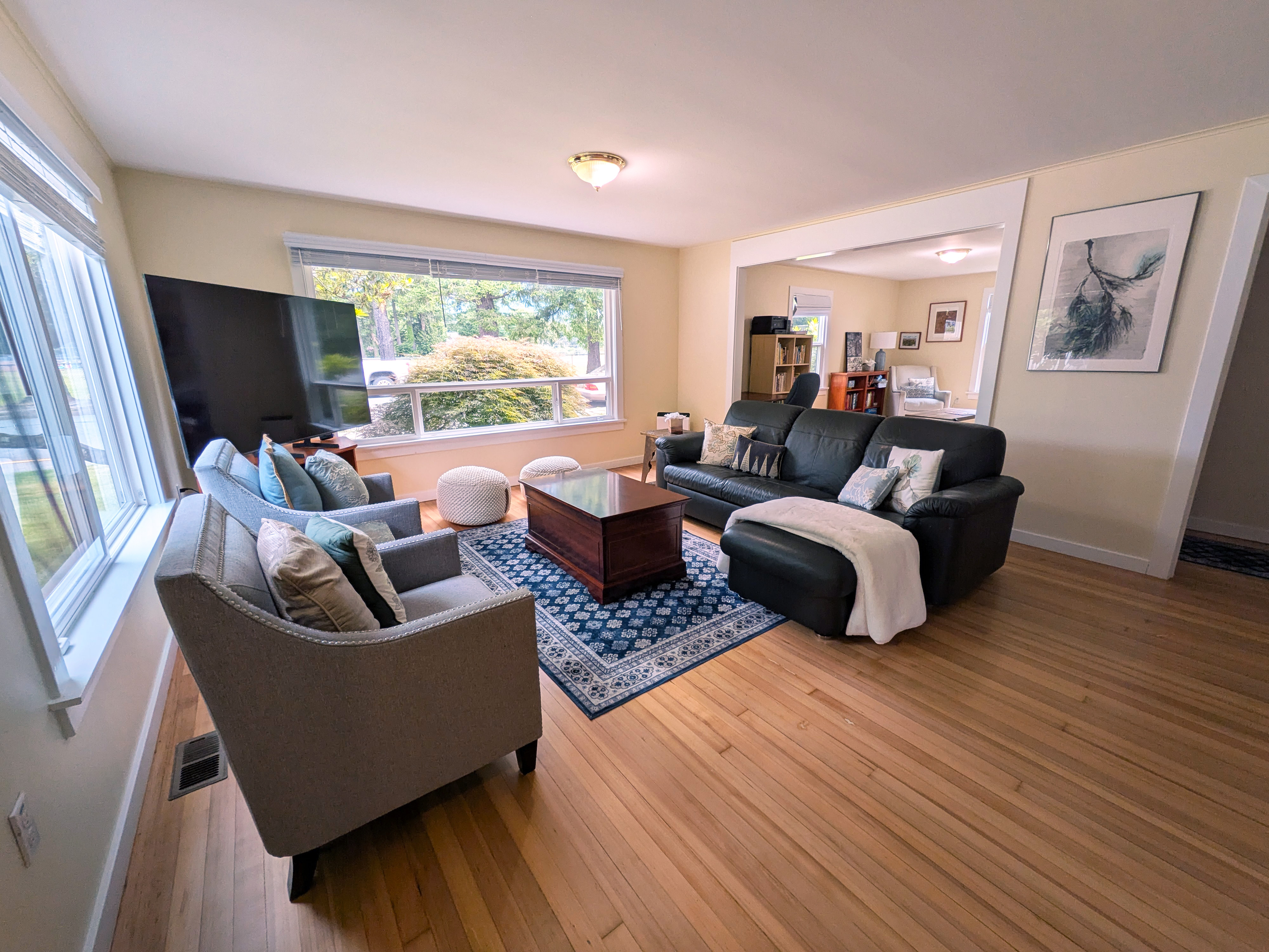 Relax in this charming two-bedroom 1940s home with original wood floors and a quiet backyard. The house can comfortably sleep up to six people with 3 queen beds, one in each bedroom, and a Murphy bed in the study/library. Located in downtown North Bend, you will be walking distance from restaurants, shopping, and entertainment as well as having easy access to outdoor activities such as hiking, mountain biking trails, climbing, and skiing. Come enjoy the peace.
